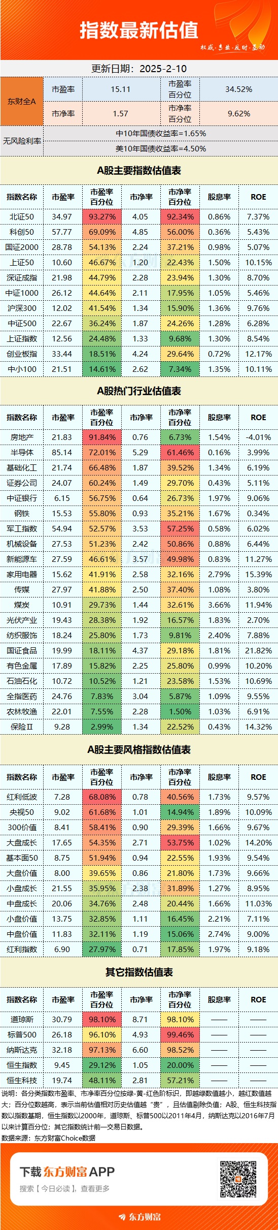A股最新估值表(2025年2月10日)
