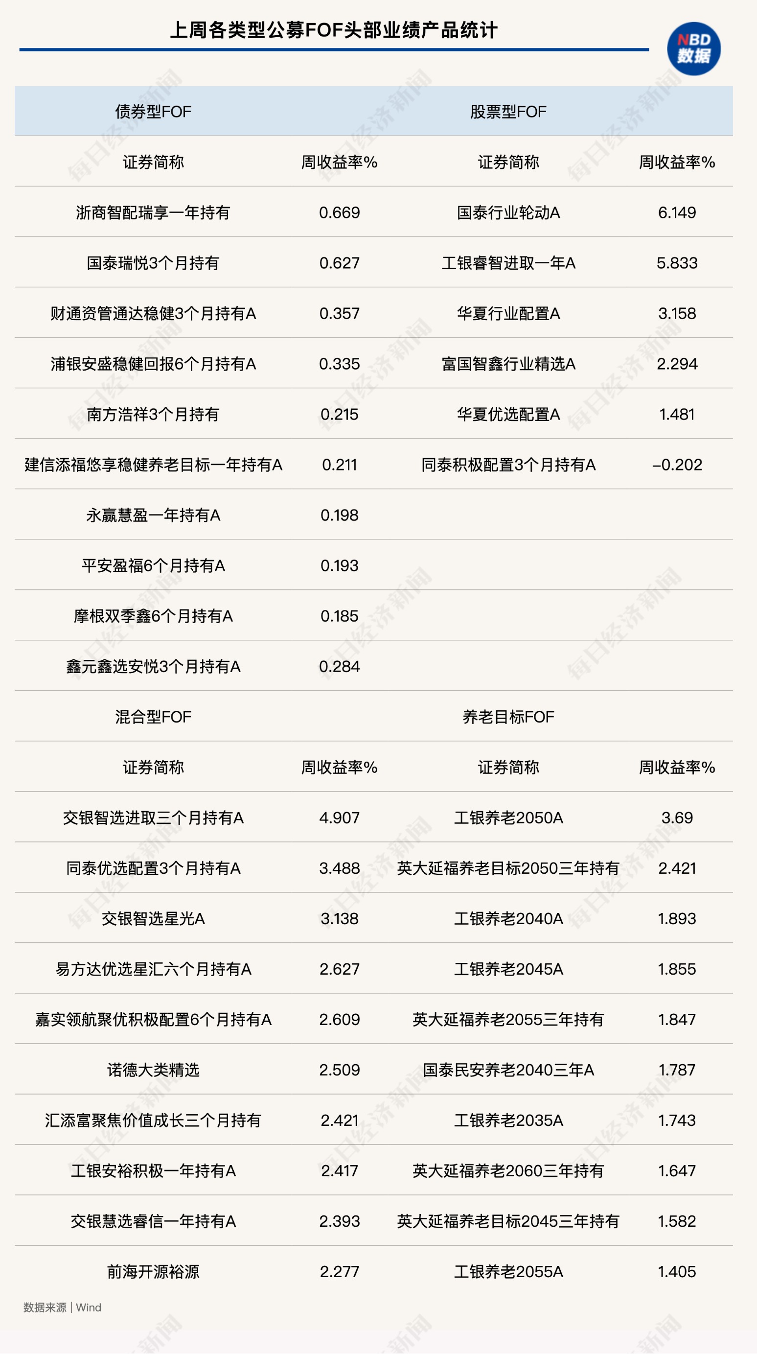 统计显示,上周权益类FOF普遍收获正收益。股票型FOF当中,国泰行业轮动、工银睿智进取一年、华夏行业配置业绩靠前。国泰行业轮动A录得6.15%,业绩领跑所有公募FOF。