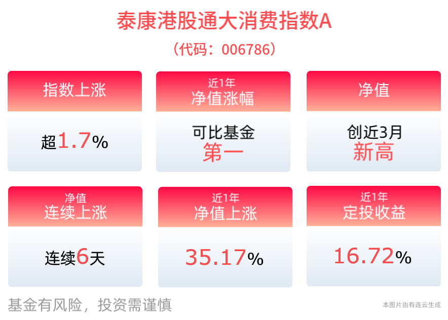 关注泰康港股通大消费指数A(006786),关联基金(泰康港股通大消费指数C:006787)。