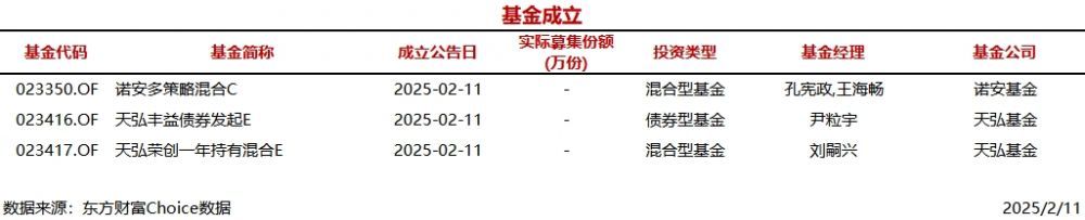 今日3只基金公告成立