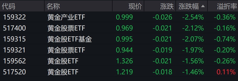 黄金股逆势调整,多只黄金相关ETF跌逾2%