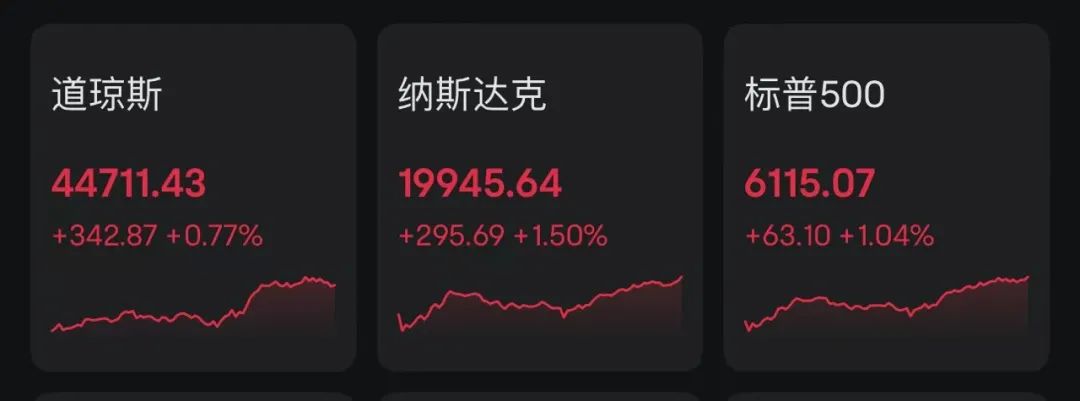 昨夜,美股高开高收,三大指数集体收涨。纳指涨1.5%,标普500指数涨1.04%,道指涨0.77%。