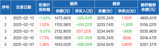 国证2000ETF:融资净偿还226.63万元,融资余额1475.96万元(02-13)