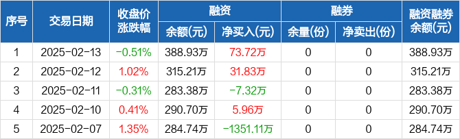 A500指数ETF:融资净买入73.72万元,融资余额388.93万元(02-13)