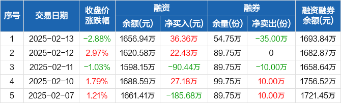信息技术ETF:融资净买入36.36万元,融资余额1656.94万元(02-13)