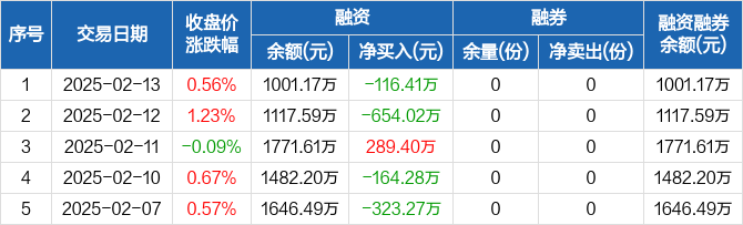 恒生红利ETF:融资净偿还116.41万元,融资余额1001.17万元(02-13)