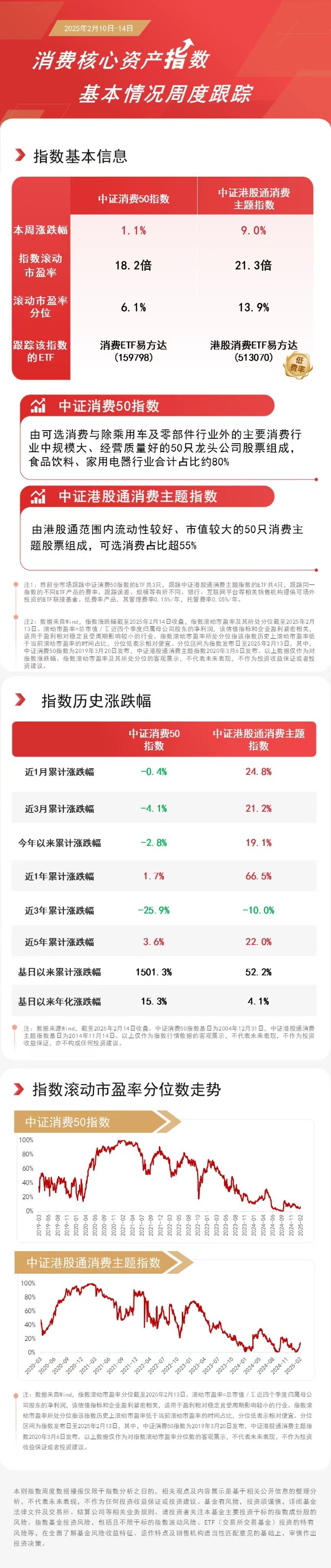 本周中证港股通消费主题指数上涨9.0%,中证消费50指数上涨1.1%。