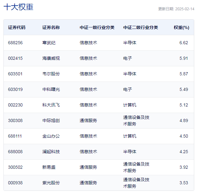 中证人工智能产业指数从沪深市场为人工智能提供基础资源、技术以及应用支持的公司中,根据人工智能业务占比、成长水平和市值规模构建指标体系,选取50只最具代表性上市公司证券作为指数样本,以反映沪深市场人工智能产业上市公司证券的整体表现。