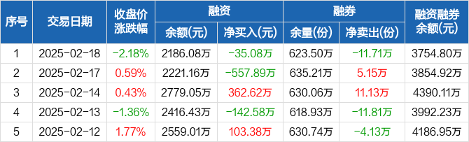 中证1000ETF易方达:融资余额2186.08万元,创近一年新低(02-18)