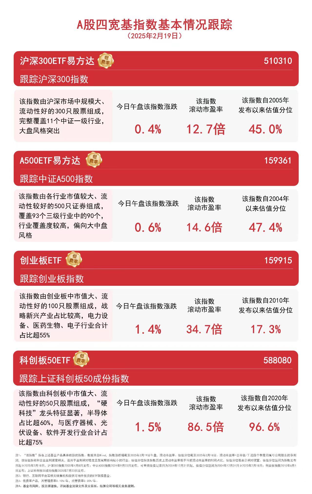 大盘反弹,A500ETF易方达(159361)、沪深300ETF易方达(510310)等产品助力便捷布局A股资产