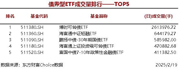 每经AI快讯,据东方财富Choice数据统计,今日共4只股票型ETF成交量超3000万手,华夏中证A500ETF成交4668.54万手,债券型ETF成交量最大的是博时可转债ETF(261.4万手),商品型ETF成交量最大的是华安黄金易ETF(315.61万手)。