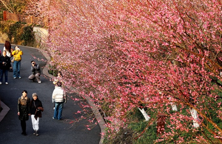 通往净慈寺的山路上,梅花成林,微风拂过,花香四溢,沁人心脾。