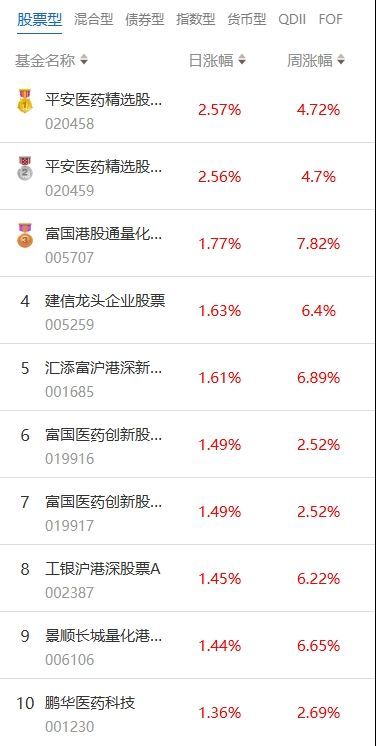 南方财经2月19日电,根据南财基金通数据,2025年02月18日当日收益靠前的股票型基金包括:平安医药精选股票型证券投资基金(020458,日收益2.57%);富国港股通量化精选股票型证券投资基金(005707,日收益1.77%);建信龙头企业股票型证券投资基金(005259,日收益1.63%)等。收益较低的股票型基金包括:申万菱信医药先锋股票型证券投资基金(015171,日收益-4.65%);申万菱信数字产业股票型发起式证券投资基金(018048,日收益-4.56%);招商体育文化休闲股票型证券投资基金(001628,日收益-4.36%)等。