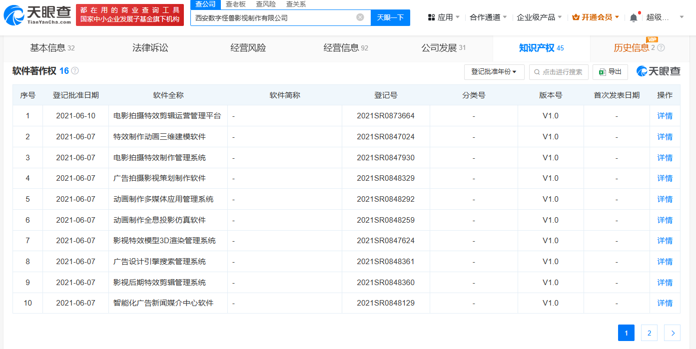南方财经2月20日电,据媒体报道,随着《哪吒2》的爆火,参与其制作的西安数字怪兽特效团队也火出了圈。公司负责人周阿娟表示,之前公司每月只能收到十几份简历,但现在距《哪吒2》爆火后还不到一月,公司就已经收到了上百份求职简历,还有一些高校希望他们能够接纳一些学生在团队中实习。天眼查App显示,“数字怪兽视效”关联公司西安数字怪兽影视制作有限公司成立于2016年8月,法定代表人、执行董事兼总经理为石超群,注册资本200万人民币,经营范围包括软件开发、数字文化创意软件开发、数字文化创意内容应用服务、广播电视节目制作经营等,由石超群全资持股。知识产权信息显示,该公司已申请注册多枚“数字怪兽”商标,此外还登记了多个“特效制作动画三维建模软件”“电影拍摄特效制作管理系统”“影视特效模型3D渲染管理系统”等软件著作权。