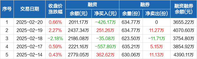 中证1000ETF易方达:融资余额2011.17万元,创近一年新低(02-20)