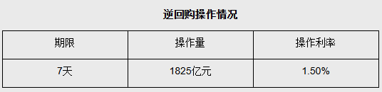 央行开展1825亿元7天期逆回购操作,实现净投放840亿元
