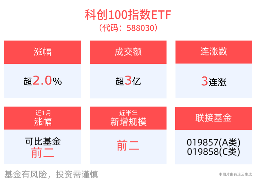 规模方面,科创100指数ETF近半年规模增长23.23亿元,实现显著增长,新增规模位居可比基金2/10。