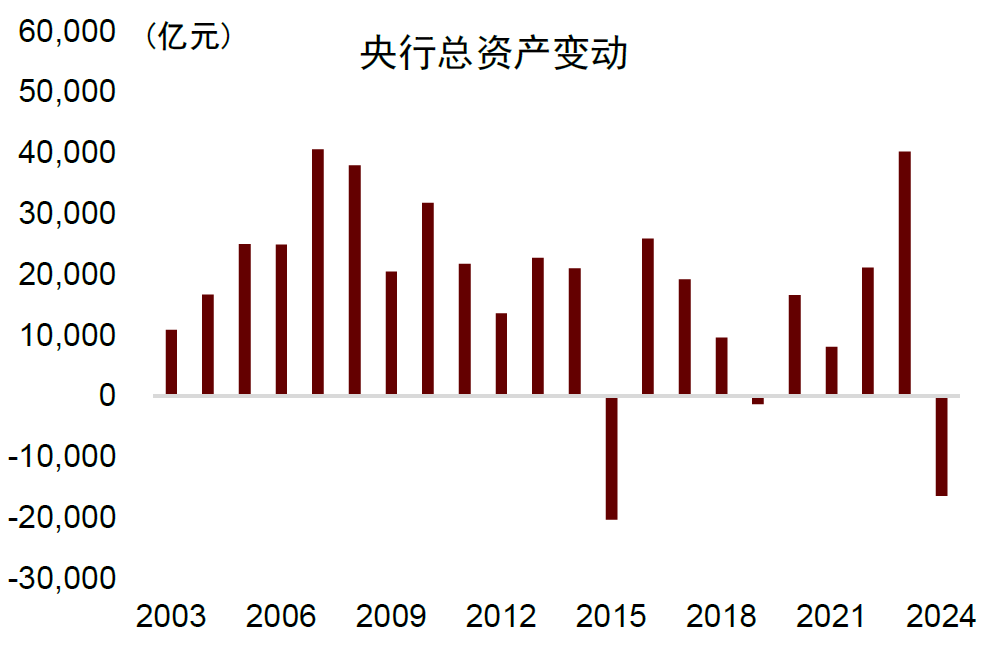 2024年我国央行资产负债表规模从45.7万亿元下降至44.1万亿元,累计减少1.6万亿元,这是2016年以来央行资产规模减少最多的一年(图表1)。加之去年底以来市场流动性偏紧,引发市场关于央行趋势收紧货币政策的猜测。我们应当如何理解央行的缩表行为呢?