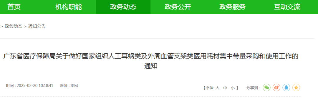 2月20日,广东省医疗保障局官网发布了《关于做好国家组织人工耳蜗类及外周血管支架类医用耗材集中带量采购和使用工作的通知》,人工耳蜗、外周血管支架两类高值医用耗材国家集采中选结果将分阶段在广东全面执行,人工耳蜗单套(含植入体、处理器)价格从平均20余万元降至5万元。其中,人工耳蜗类集采中选结果自3月1日起执行,外周血管支架类集采中选结果自5月1日起执行,两类耗材采购周期均为3年。此举将进一步降低相关患者群体的医疗负担。
