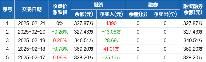 金融地产ETF:融资净买入4390元,融资余额327.87万元(02-21)