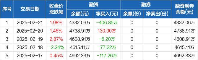 消费电子ETF:融资净偿还406.85万元,融资余额4332.06万元(02-21)