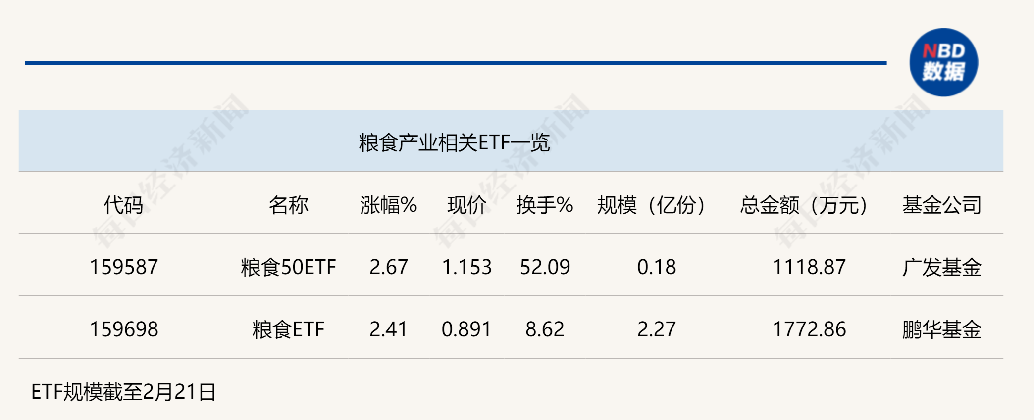 行业ETF风向标丨政策利好刺激,两粮食ETF半日涨幅超2%