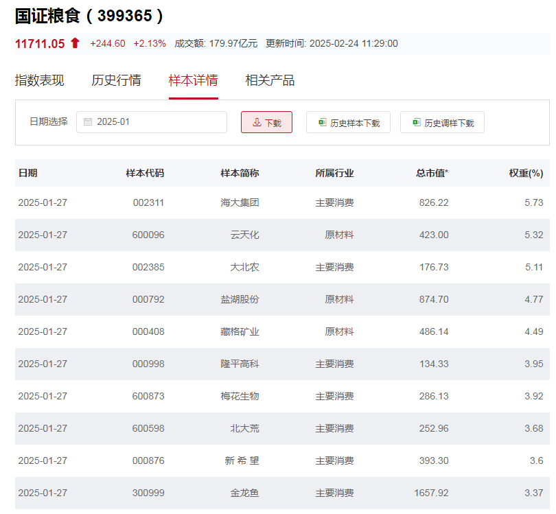 国证粮食产业指数是为反映A股市场粮食产业相关上市公司的股价变化情况并丰富指数化投资工具而编制的指数。由深圳证券信息有限公司于2009年11月4日发布。指数基日为2004年12月31日。该指数指数行业分布均衡全面,汇集各子行业龙头。从权重分布来看,权重占比较高三个细分领域为农化制品、种植业以及饲料业。目前,国证粮食指数处于历史估值低位,配置价值值得关注。