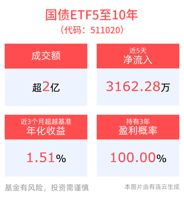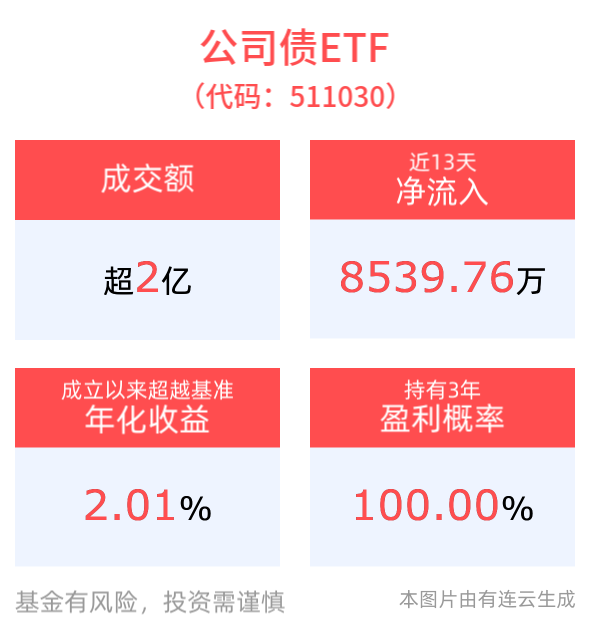 资金流入方面,公司债ETF近13个交易日内,合计“吸金”8539.76万元。国债ETF5至10年近5个交易日内,合计“吸金”3162.28万元。