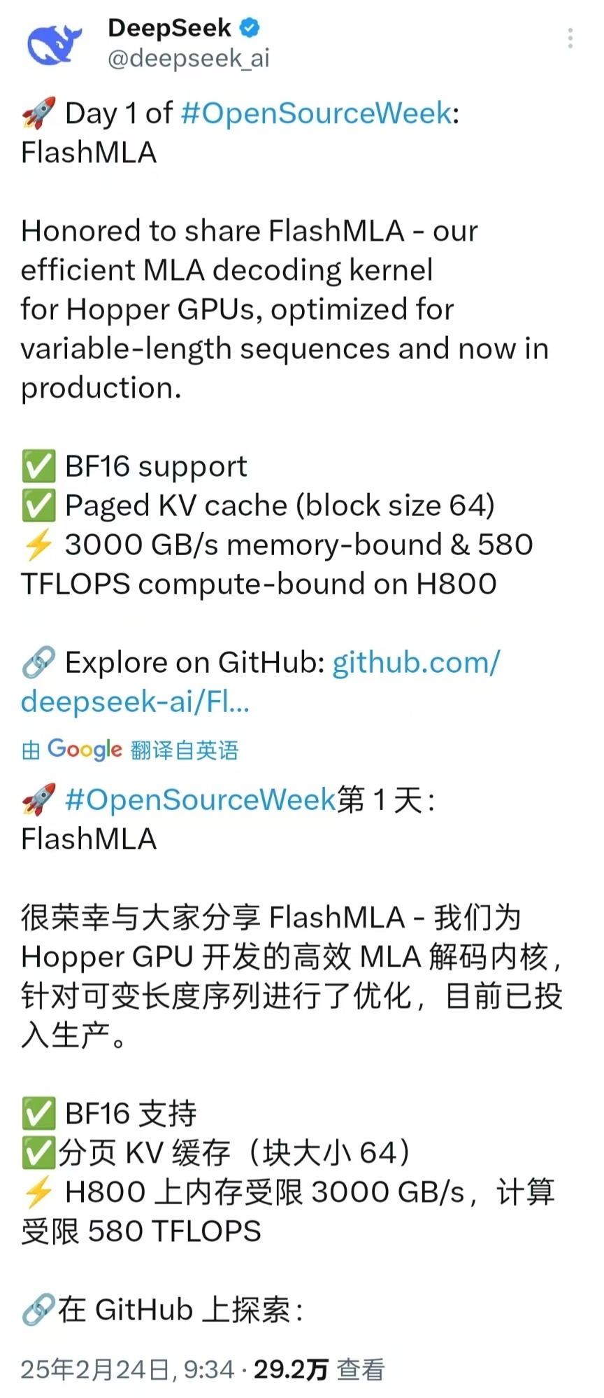 AI 推理速度再进化!DeepSeek公布首个开源代码库 FlashMLA