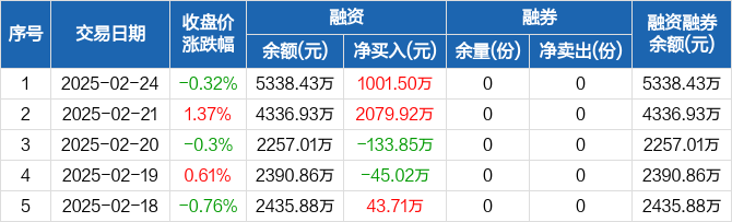 沪深300ETF南方:融资净买入1001.5万元,融资余额5338.43万元(02-24)