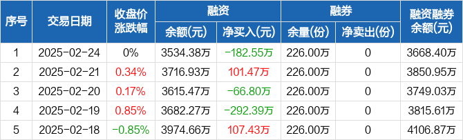 化工ETF:融资余额3534.38万元,创近一年新低(02-24)