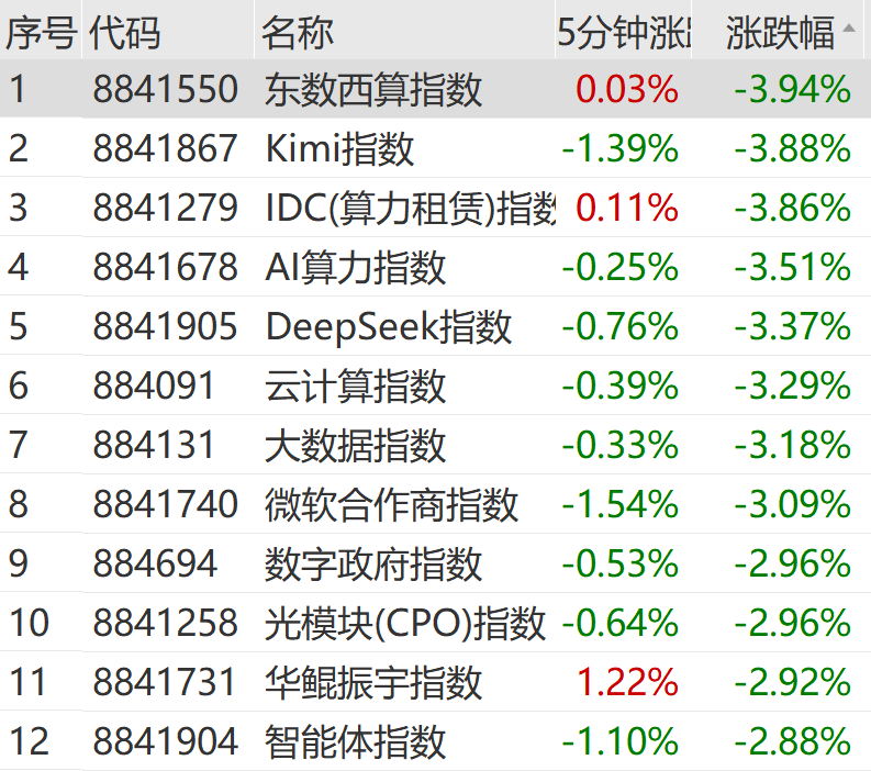 2月25日,AI算力板块盘初大跌,东数西算、算力租赁、DeepSeek、云计算等概念集体下挫。