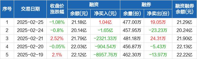 创业板ETF:融资净买入1.04亿元,融资余额21.18亿元(02-25)