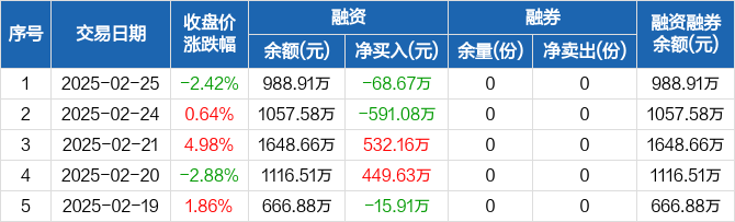 恒生科技ETF基金:融资净偿还68.67万元,融资余额988.91万元(02-25)