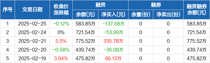 芯片ETF基金:融资净偿还137.68万元,融资余额583.85万元(02-25)