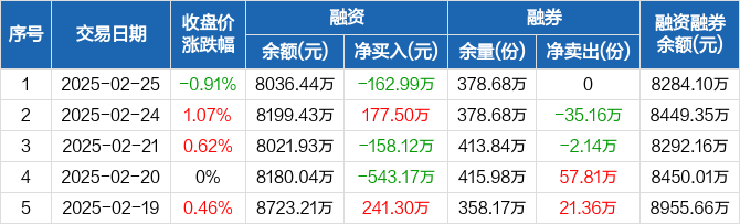 旅游ETF:融资净偿还162.99万元,融资余额8036.44万元(02-25)