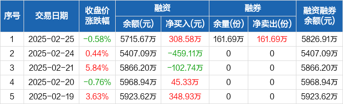 芯片ETF龙头:融资净买入308.58万元,融资余额5715.67万元(02-25)