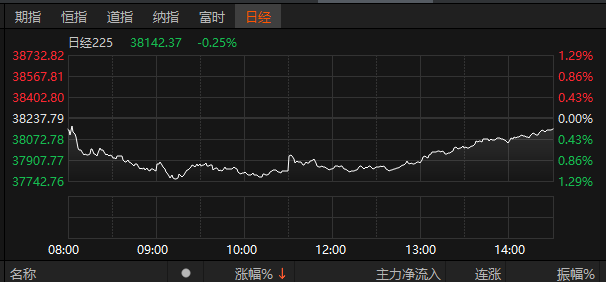 上证报中国证券网讯 2月26日,日经225指数收盘下跌0.25%,报38142.37点。