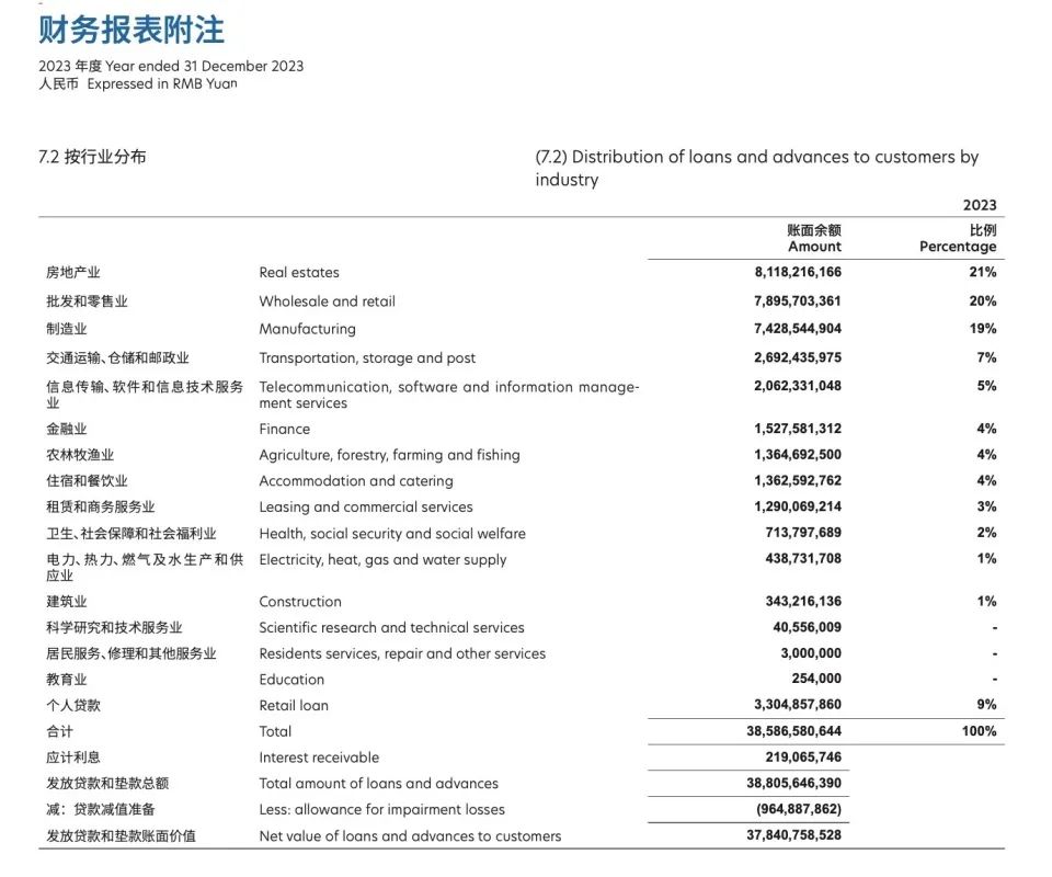 大华银行中国2023年年度报告显示,截至2023年末,该行资产总额、负债总额分别为822.81亿元、719.84亿元。具体到贷款结构,2023年,大华银行(中国)的个人贷款账面余额为33.05亿元,占该行贷款比例较小。