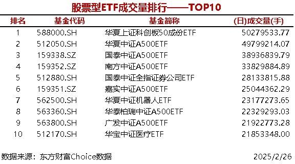4只股票型ETF成交量超3000万手,华夏上证科创板50成份ETF成交5027.95万手