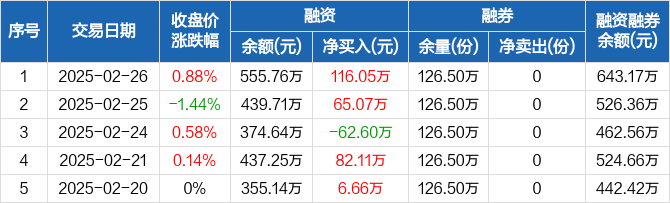 饮食ETF:融资净买入116.05万元,融资余额555.76万元(02-26)