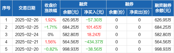 恒生红利ETF:融资净偿还57.3万元,融资余额626.95万元(02-26)