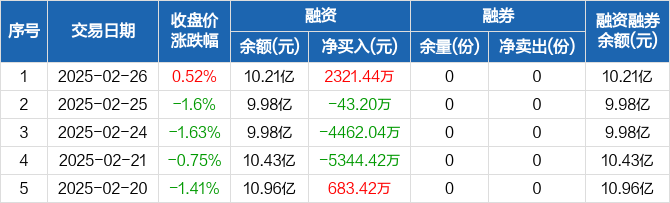纳指科技ETF:融资净买入2321.44万元,融资余额10.21亿元(02-26)