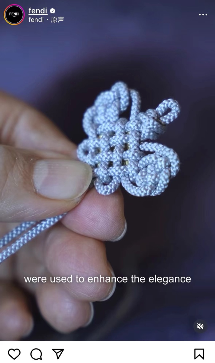 Fendi在宣传中将酷似中国结的编绳方法称为“韩国结”,图片:Fendi品牌Instagram