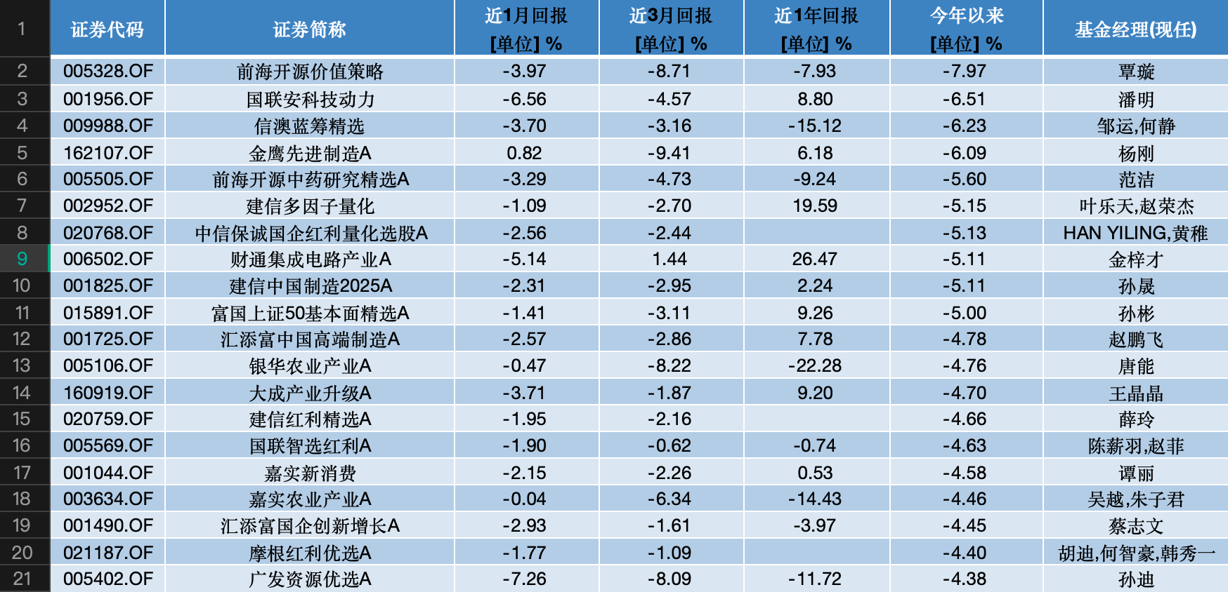 股票型基金跌幅榜:上榜产品整体跌幅不大