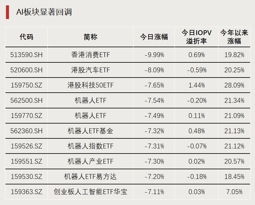 2月28日,A股及港股市场调整。数据显示,算力、机器人等AI相关板块跌幅较大,机器人ETF(562500)等多只机器人主题ETF跌超7%。数据ETF(159527)、云计算沪港深ETF(517390)、科创芯片设计ETF(588780)等跌超6%。