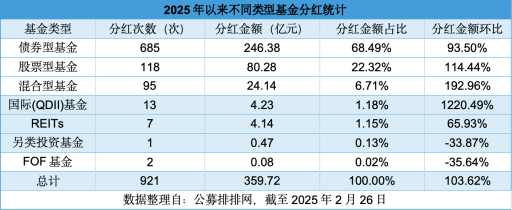 2025年以来公募分红同比增长逾1倍,债基成分红主力。