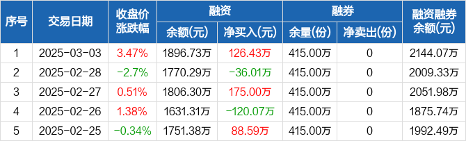 锂电池ETF:融资净买入126.43万元,融资余额1896.73万元(03-03)