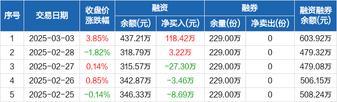 稀有金属ETF基金:融资净买入118.42万元,融资余额437.21万元(03-03)