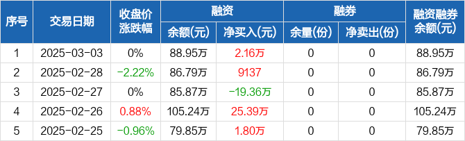 中证A500ETF天弘:融资净买入2.16万元,融资余额88.95万元(03-03)